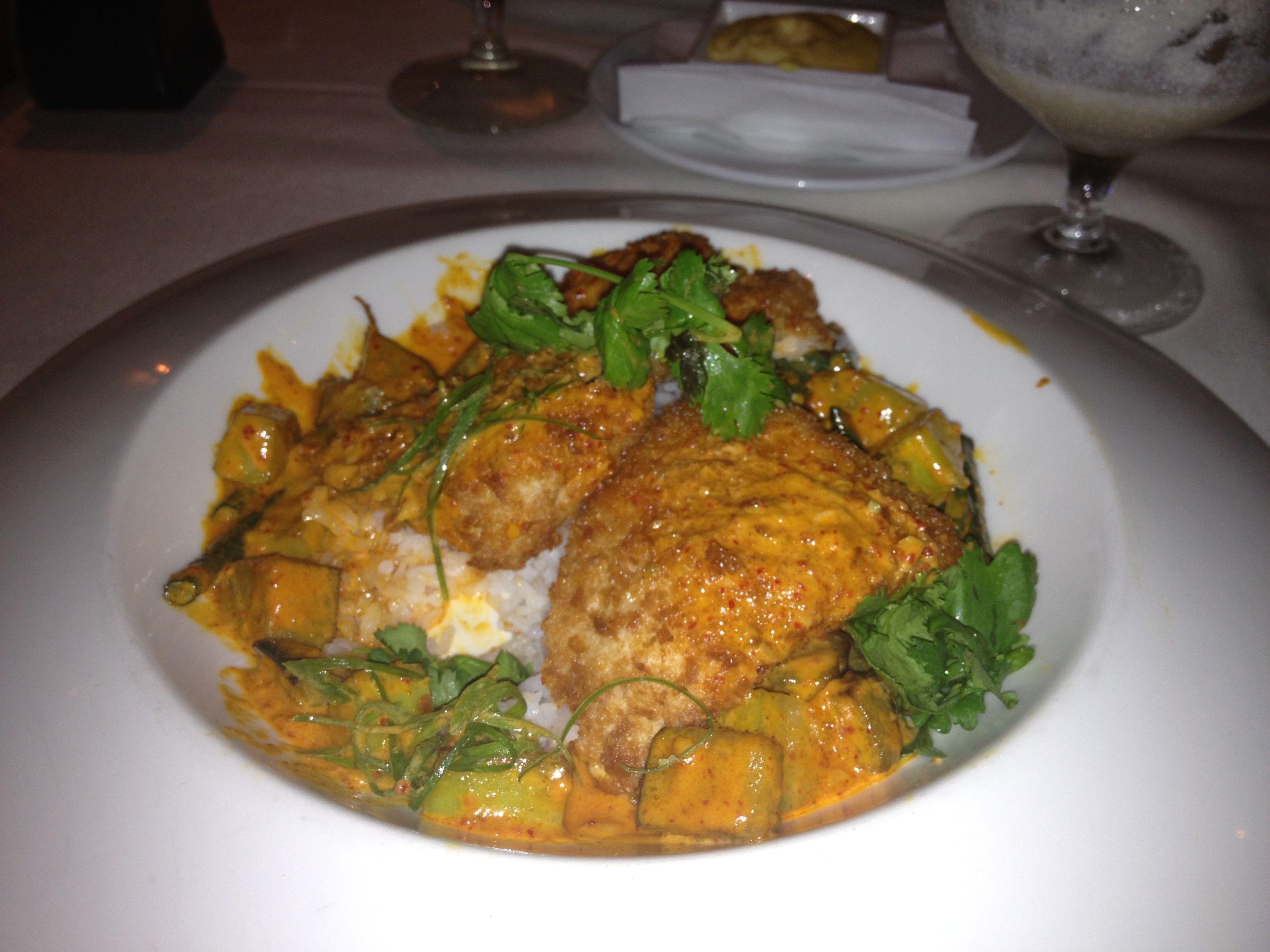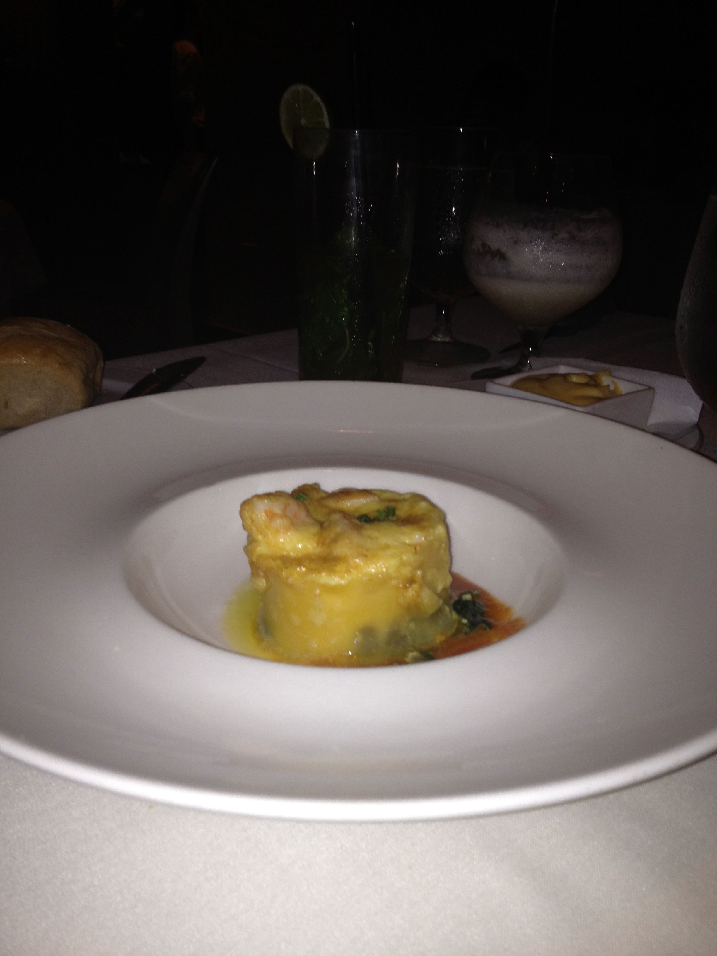 Next on the classic tasting menu was a ginger-crusted snapper served with a miso sesame vinaigrette and a seafood lasagne.